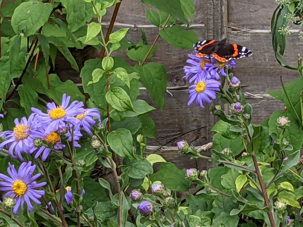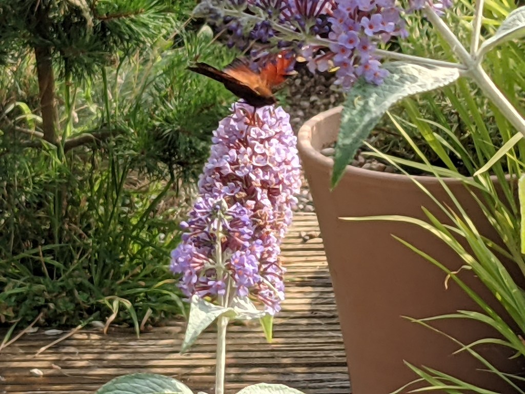 Have planted organic peat free variety of Michaelmas Daisies nearby instead but these due to lack of sunshine haven’t flowered yet and aren’t likely to in time for first butterfly due about 4 Sept !!!